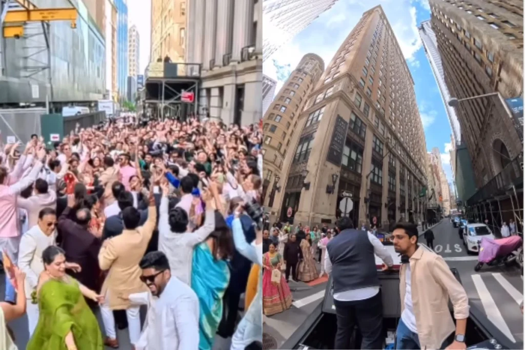 Bride Groom viral video: हम भारतीयों को जब भी और जहां पर भी अपनी ताकत और संस्कृति दिखाने का मौका मिलता है, खुलकर दिखाते हैं और अपनी छाप छोड़ते हैं। आज से पहले आपने भारत में दूल्हे की बारात निकलते हुए तो खूब देखा होगा, लेकिन क्या कभी न्यूयॉर्क की फेमस वॉल स्ट्रीट पर इंडियन वेडिंग का क्रेज देखा है? अगर नहीं तो इस Viral Video को देख लीजिए। Social Media पर एक बारात का वीडियो आग की तरह फैल रहा है। इसमें 400 भारतीयों ने Wall Street को बंद कर दिया है। जिस मस्ती के साथ ये अमेरिका में बारात निकाल रहे हैं, उसे देख यूजर्स को हौरानी हो रही है।
