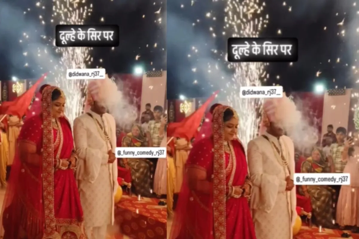 वीडियो में देखा जा सकता है कि, दूल्हा अपनी नई नवेली दुल्हनिया के साथ खड़ा है. इस दौरान आस-पास मेहमान खड़े हैं और नए जोड़े का स्वागत कर रहे हैं . इस दौरान आस-पास लाइट्स जल रही हैं. इस जश्न के बीच अचानक से दूल्हे की पगड़ी में आग लग जाती है. कुछ पल के लिए दुल्हन और खुद दूल्हे को भी पता नहीं चलता है. लेकिन तभी कैमरामैन दौड़ता हुआ आता है और आग लगी हुई पगड़ी को नीचे फेंकता है. हादसे को देख आस- पास के लोग सन्न रह जाते हैं. कैमरामैन ने अपनी सूझबूझ से बड़े हादसे को होने से बचा लिया है.