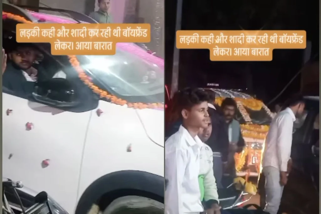 वीडियो के ऊपर एक कैप्शन में लिखा है, ‘लड़की कहीं और शादी कर रही थी ब्यॉयफ्रेंड लेकर आया बारात’। चंद सेकंड के इस वीडियो में एक लड़के की आवाज आ रही है, जिसमें वह बोल रहा है कि, पहली वाली गाड़ी लड़की के दूल्हा की है जिसे माता-पिता ने पसंद किया है। दूसरी युवती के BoyFriend की है । ये दोनों एक साथ पहुंच गए हैं अह बवाल होगा। वीडियो कब और कहां का है? इसकी सत्यता की हम पुष्टि नहीं करते हैं। लेकिन वीडियो ने यूजर्स को हैंरान कर दिया है।