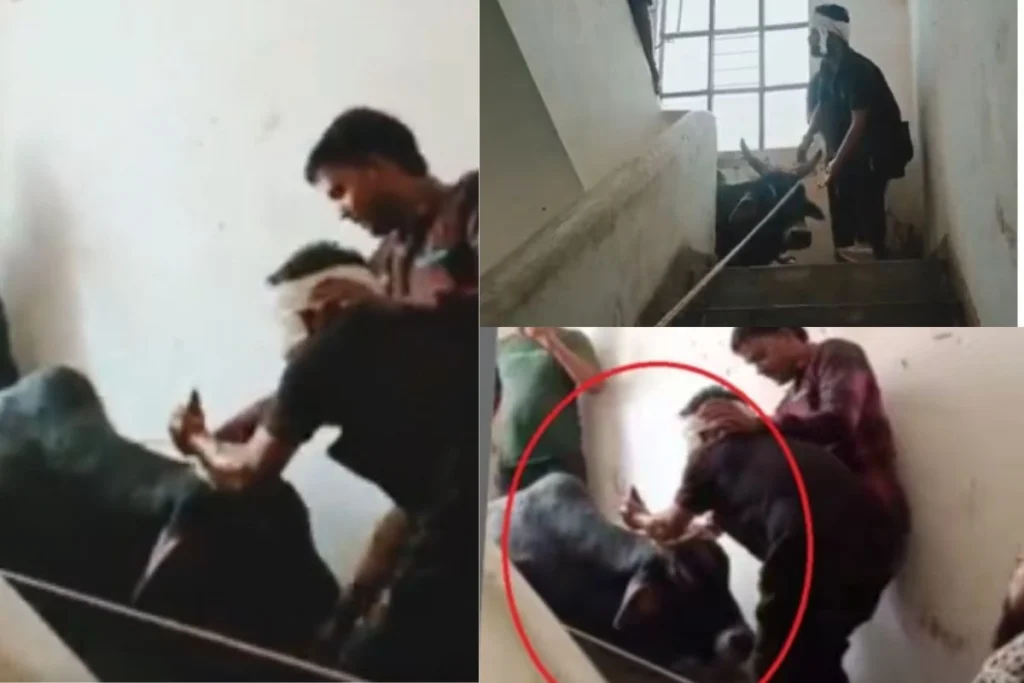 पुलिस चौकी की तीसरी मंजिल पर चढ़ा सांड