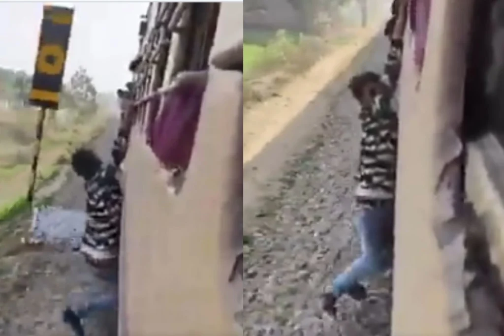 Farrukhabad Video: यूपी से एक रीलबाज लड़के का वीडियो सामने आया है। वह ट्रेन पर लटकते हुए Reel बना रहा था और तभी हादसे का शिकार हो गया। अब चलती हुई ट्रेन में लटकते हुए युवक का फर्रुखाबाद वीडियो सोशल मीडिया पर काफी देखा जा रहा है। इसमें वह चलती हुई ट्रेन से लटका हुआ है और जान बचाने की गुहार लगा रहा है। युवक की स्थिति को देख वहां पर मौजूद लोगों ने तुरंत तेजी दिखाई और कुछ ऐसा किया, जिसका वीडियो छा गया है।इसके साथ ही UP Police ने भी प्रतिक्रिया दी है।