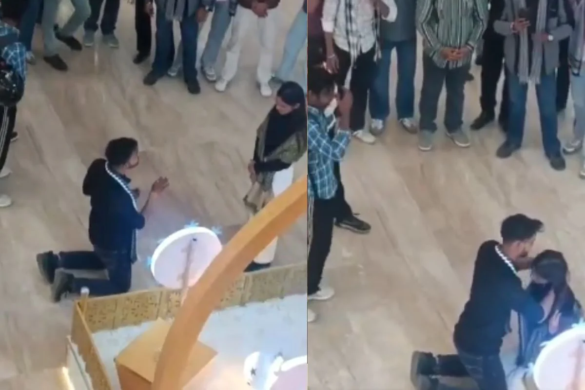 एनडीटीवी द्वारा शेयर किए गए इस गाजियाबाद वायरल वीडियो में दिखाया गया है कि कैसे एक लड़का सेंट्रल मॉल में सभी लोगों की मौजूदगी में अपने लड़की को प्रपोज करता है। घुटने के बल बैठकर अपने प्यार का इजहार करने के बाद भी आशिक नहीं रुका और उसने अपनी लड़की के मांग में सिंदूर भी भर दिया। वीडियो में साफ तौर पर देखा जा सकता है कि कैसे लड़का अपनी जेब से मंगलसूत्र निकलता है और फिर अपनी प्रेमिका के गले में डाल देता है।