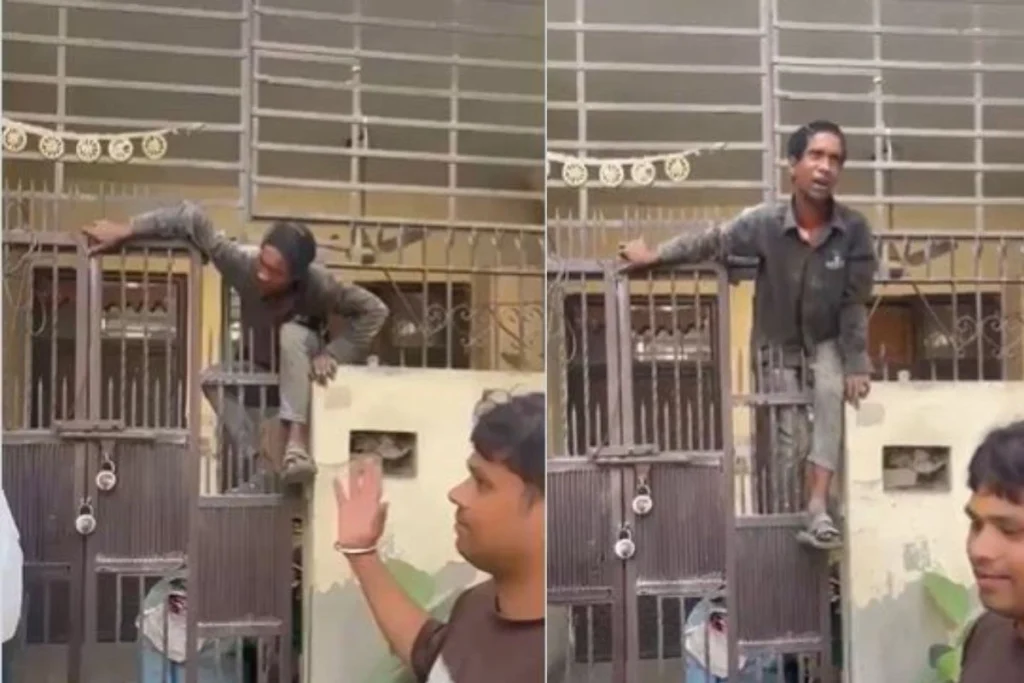 शालीमार गार्डन से आया ये वायरल वीडियो Ghar Ke Kalesh ना एक्स हैंडल से पोस्ट किया है। इसके साथ ही मामले की जानकारी देते हुए कैप्शन में लिखा है, ‘गाजियाबाद: चोर घर में घुसा, भागते समय गेट की तेज सलाखों में फंस गया। स्थानीय लोगों ने उसे पकड़ लिया और शालीमार पुलिस को सौंप दिया।’ वीडियो में देखा जा सकता है कि, एक चोर बंद गेट के ऊपर लगी लोहे की नुकीली ग्रिल में फंस जाता है।