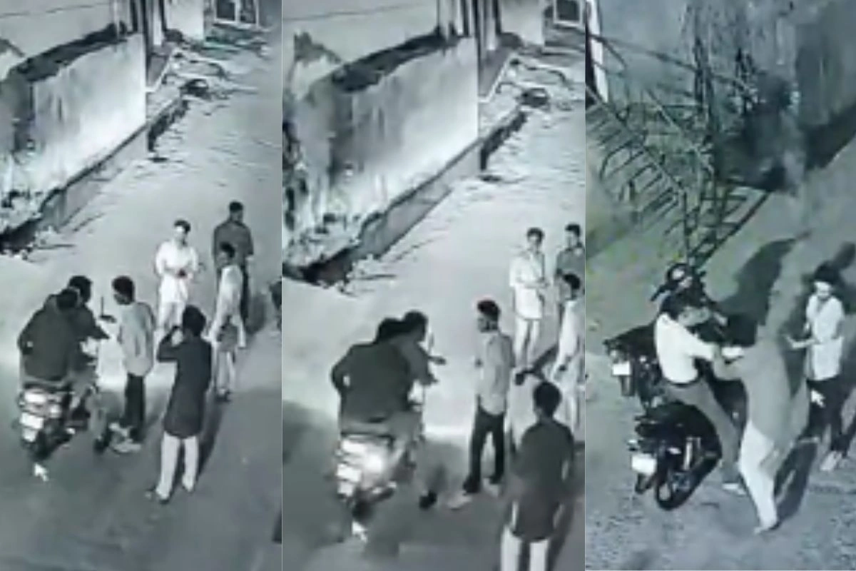 इस घटना के वीडियो में साफ देखा जा सकता है कि, गली में कुछ युवक खड़े हैं। तभी सामने से गश्त लगाती पुलिसवालों की बाइक आती है। इन युवकों में से एक लड़का पुलिसवाले के पैर छूते हुए आशीर्वाद लेता है और हालचाल पूछता है। इसके बाद पुलिसवाले वहां से चले जाते हैं। पुलिसवालों के जाने के थोड़ी देर बाद जैसे ही बाइक सवार एंट्री करता है, उस पर दरिंदे टूट पड़ते हैं। वह नाली में गिराकर उसे जमकर पीटते हैं और फिर भाग जाते हैं।