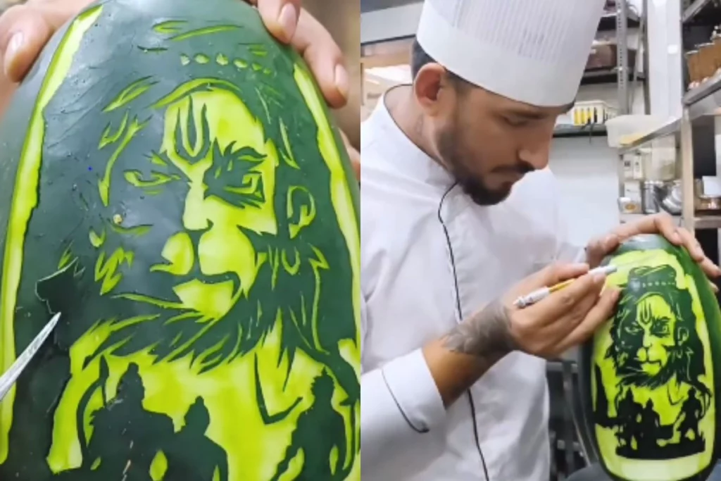 Viral Video: अगर किसी इंसान में कुछ करने का जज्बा होता है, तो वह बिना किसी की परवाह किए केवल अपने काम में लगा रहता है। यदि आप में कोई भी टेलेंट हैं , तो उसे आपसे कोई छीन नहीं सकता है। इंसान अपने टेंलेंट की मदद से ही जिंदगी में तरक्की करता है। ऐसे ही एक टेलेंट भरे शेफ की एक पोस्ट सोशल मीडिया पर बहुत तेजी से वायरल हो रही है। इसमें शेफ ने तरबूज के ऊपर हनुमान जी (Lord Hanuman on watermelon) का एक प्यार सा चित्र बनाया है, जो देखने में बेहद सुंदर लग रहा है। जब से यह पोस्ट उन्होंने सोशल मीडिया पर अपलोड किया है, तब से य़ूजर्स इस तस्वीर को देख उस शेफ के टेलेंट की काफी तारीफ कर रहे हैं।