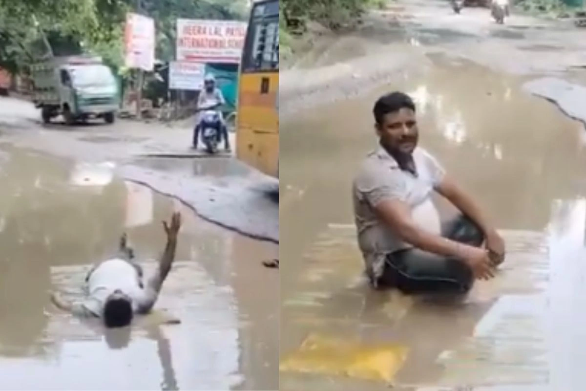 Kanpur Viral Video: विरोध प्रदर्शन के आपने एक से बढ़कर एक अनोखे तरीके देखे होंगे, लेकिन यकीन मानिए ये वीडियो सबसे अलग है। इसमें एक आदमी बीच सड़क पर टूटी सड़के के गड्ढे में भरे पानी पर लेटकर भारत माता की जय के नारे लगाते हुए विरोध कर रहा है। आदमी की सिस्टम से शिकायत है कि, उसके द्वारा कई बार कहे जाने के बाद भी टूटी सड़क ठीक नहीं हुई है। इस वायरल वीडियो में दावा किया जा रहा है कि, प्रदर्शनकारी पिता की बच्ची इस गड्ढे में गिर गई थी। जिसकी वजह से उसने ये अनोखा विरोध प्रदर्शन शुरु कर किया है। ये घटना उत्तर प्रदेश के कानपुर की है । वीडियो देख एक यूजर लिखता है, ‘बेटी गड्ढे में गिरी, बाप सिस्टम में…”।