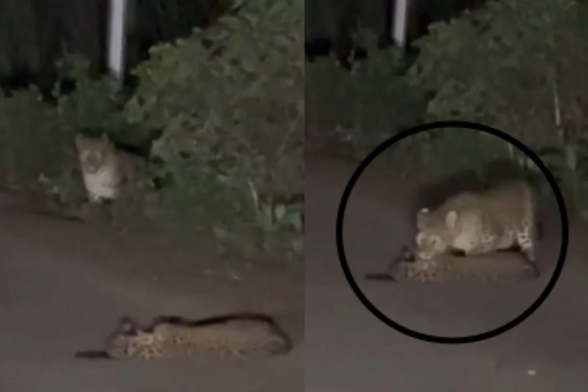 Maharashtra Viral Video को x चैनल से शेयर करते हुए लिखा गया, “भावुक कर रहा यह वीडियो महाराष्ट्र के सतारा में वाहन की टक्कर से हुई तेंदुए के बच्चे की मौत, मां करती रही बच्चे का इंतजार, भावुक कर देगा वीडियो।” वीडियो में आप देख सकते हैं कि अपने बच्चों को बीच सड़क लेटे हुए देखकर इंतजार कर रही मां उसके पास आती है लेकिन उसे नहीं पता होता है कि जिसके लिए वह इंतजार कर रही थी वह तो हमेशा के लिए चला गया। महाराष्ट्र वायरल वीडियो में मां अपने बच्चे को मुंह में उठाती हुई नजर आ रही है।