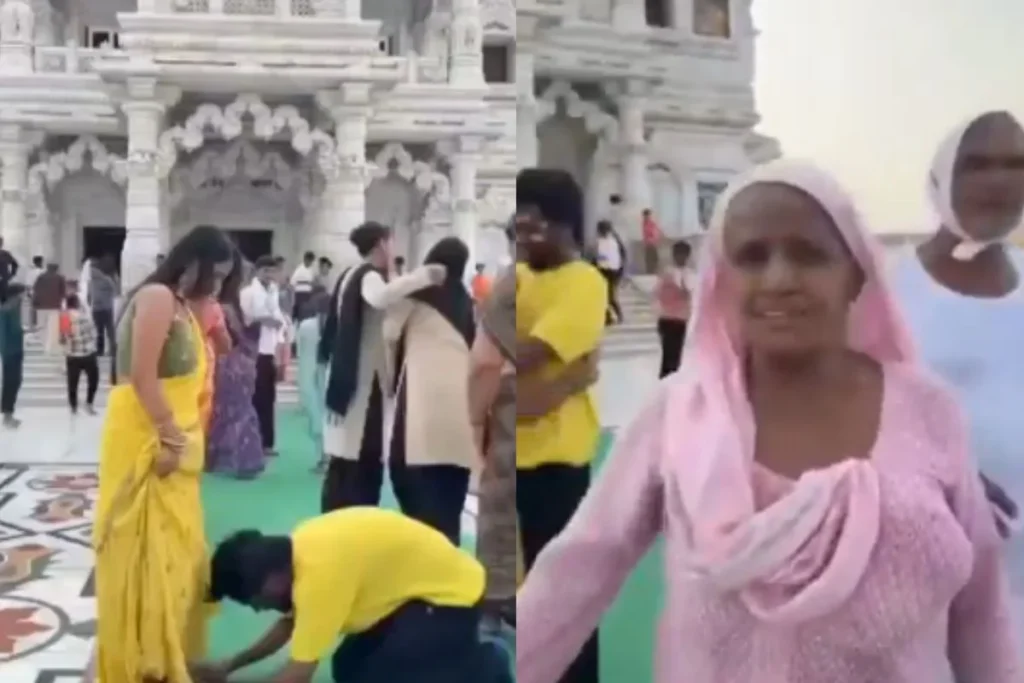 Mathura Viral Video: मथुरा वृंदावन के प्रेम मंदिर में लोग अक्सर पूजा दर्शन करने के लिए जाते हैं और यहां भी अगर रील का खुमार देखा जाए तो निश्चित तौर पर लोगों के रिएक्शन सामने आते हैं। हम यह इसलिए कह रहे हैं क्योंकि Mathura Viral Video में एक कपल ने कुछ ऐसा किया जिस पर बूढ़ी अम्मा का गुस्सा फूट पड़ा और वह सबके सामने कपल को फटकार लगा दी थी। इस वीडियो को अंत तक देखने के बाद जहां कुछ यूजर्स इस हरकत को आपत्तिजनक बता रहे हैं तो कुछ रील्स का बुखार कह रहे हैं। आइए देखते हैं 30 सेकंड का यह वायरल वीडियो।
