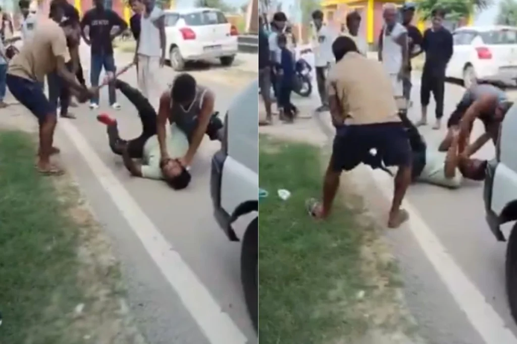 बीच सड़क पर युवक को पीटते लड़कों के वीडियो को Social Media पर Nigar Parveen नाम के यूजर ने पोस्ट किया है।
