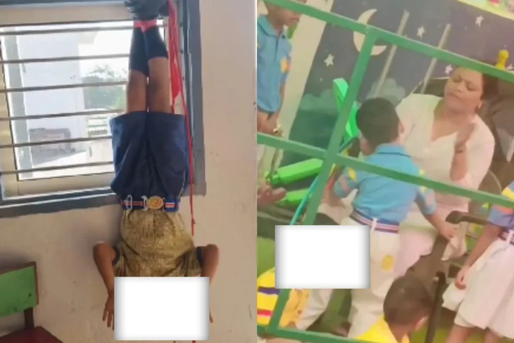वीडियो में साफ देखा जा सकता है कि, मासूम बच्चे को रस्सी से बांधकर उल्टा लटकाया हुआ है। वहीं, टीचर उसे पीट भी रही है। मासूम बच्चे के साथ ये क्रूरता सिर्फ इसलिए की गई थी। क्योंकि उसने होमवर्क नहीं किया था।