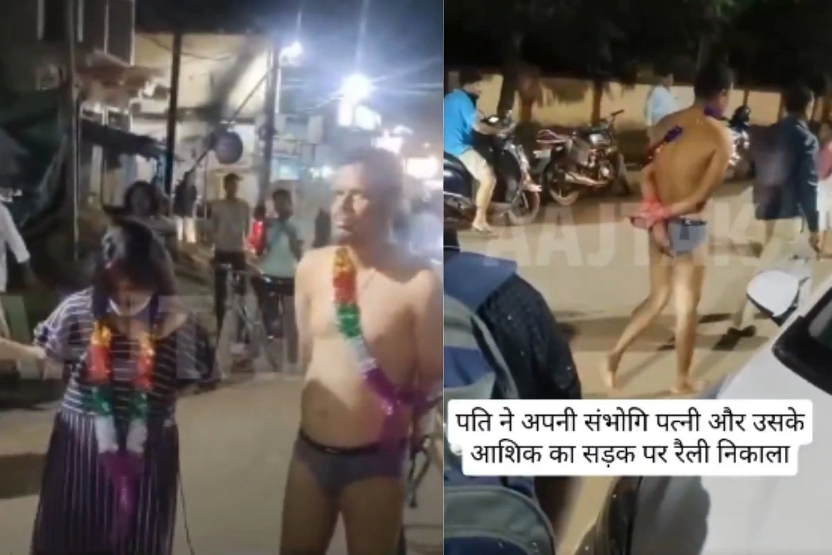 बीवी और उसके आशिका का पति ने निकाला जुलूस