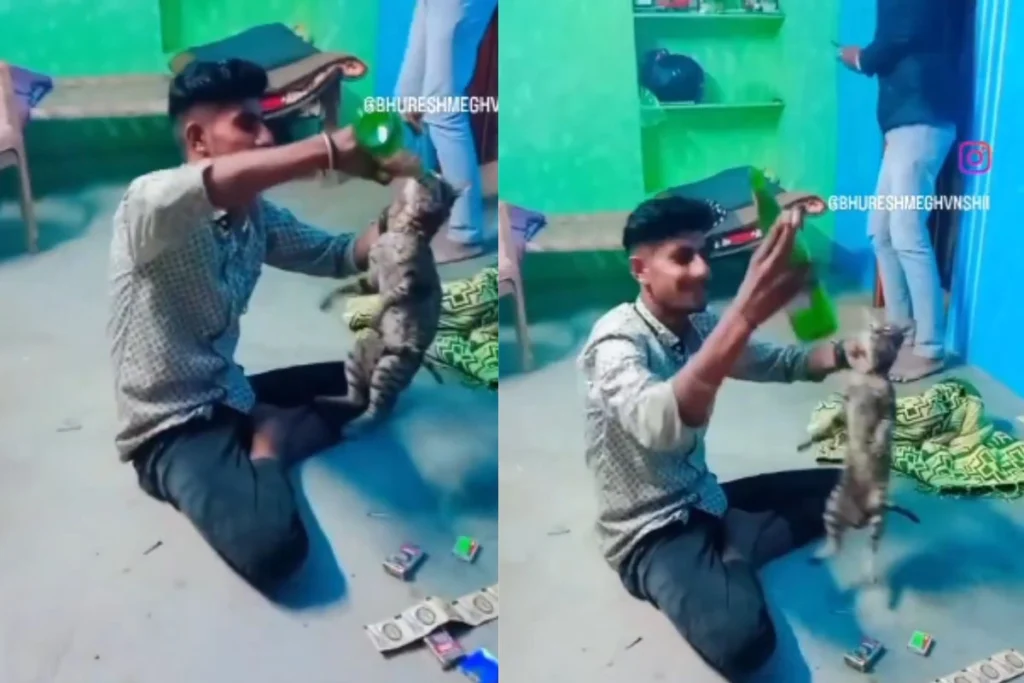 Rajasthan Viral Video: बंद कमरे में बिल्ली को पीटते हुए एक युवक का वायरल वीडियो सामने आया है। वह सिर्फ इस बिल्ली को शराब पिला ही नहीं रहा बल्कि, उसे उठा-उठाकर पटक भी रहा है। ये राजस्थान वायरल वीडियो जो भी देख रहा वो सोच में है। हैरानी की बात ये है कि, इस दौरान कमरे में अन्य लोग भी मौजूद हैं लेकिन, वो इस बेजुबान जानवर को बचाने की जगह वीडियो बना रहे हैं। ये घटना काफी शर्मनाक है।