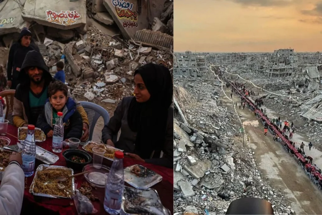 खंडहरों के बीच लंबी-लंबी मेजें लगाई गईं, जहां परिवारों ने भोजन साझा किया, प्रार्थना की और एकता के पल बिताए। हल्की सजावट और धार्मिक संगीत बज रहा था।निवासी मोहम्मद अल दादा ने कहा, “हमने अपने तबाह हुए घरों के सामने ही रोज़ा खोलने पर जोर दिया, जो नुकसान के बावजूद दृढ़ता को दर्शाता है। यह सभा युद्ध की मानवीय कीमत और तबाही के बावजूद आस्था और समुदाय को बनाए रखने के दृढ़ संकल्प को उजागर करती है।” वीडियो में लगभग हर आयु वर्ग के लोग इफ्तारी करते हुए नजर आ रहे हैं।