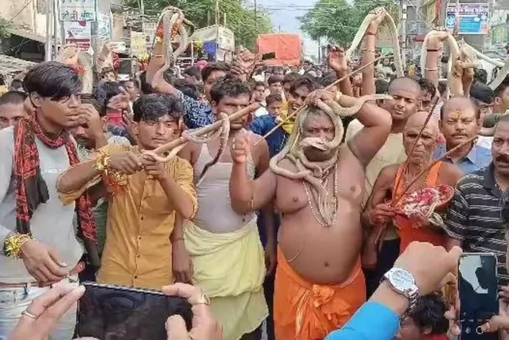 सांपों के साथ झूमते दिखे लोग