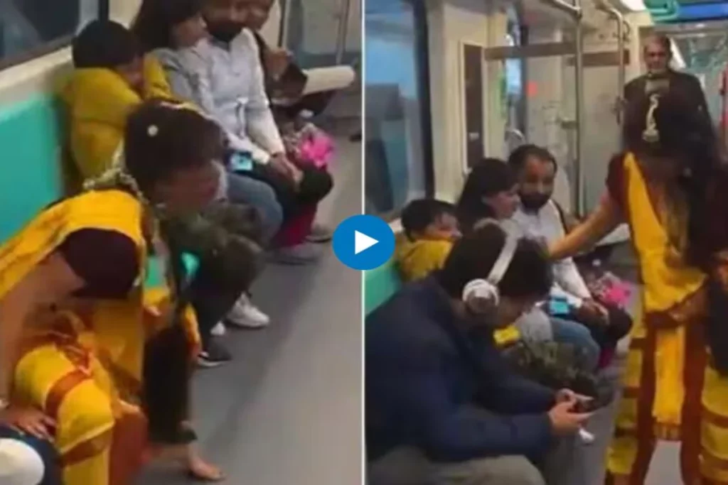‘dfordelhi’ ने अपने इंस्टाग्राम अकाउंट पर एक वीडियो शेयर किया है। जिसमें एक लड़की मंजुलिका की तरह ड्रेस पहने हुए और अपने बिखरे बाल दिखाते हुए मेट्रो ट्रेन में एक्टिंग कर रही है। इस वीडियो को शेयर करते हुए कैप्शन में लिखा है “यह मेट्रो में क्या हो रहा हैं, क्या आप इस कैरेक्टर को पहचान सकते हैं।” इस वीडियो में देखा जा सकता है कि लड़की पीली साड़ी पहनकर और डरावना मेकअप करते हुए मेट्रो में घूम रही है। इसी बीच वह काफी अजीबोगरीब हरकतें भी करती हैं। वहीं सीट पर बैठा एक लड़का हेडफोन लगाकर गाने सुन रहा है। तभी लड़की उसके सामने जाकर जोर-जोर से चिल्लाने लगती है। उसके बाद लड़का अपनी सीट से डर के मारे उठकर दूर चला जाता है और लड़की उस सीट पर बैठ जाती है।