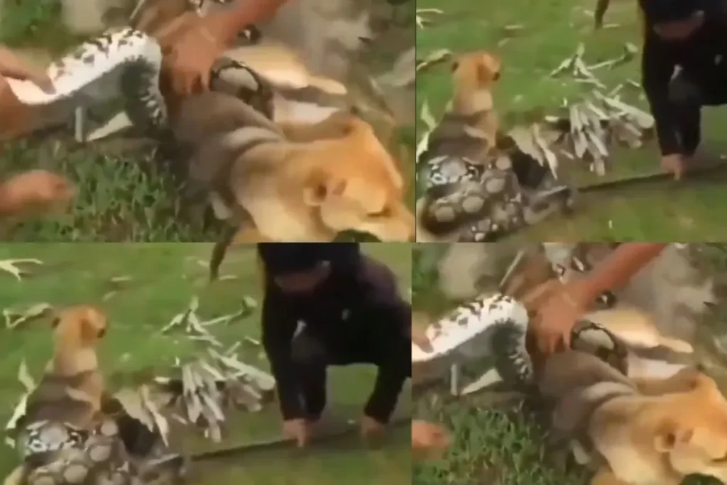 अजगर सांप से बच्चों ने कुत्ते को बचाया