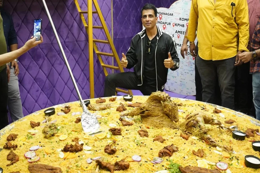 लाखों दिलों को जीतने वाले सोनू सूद खुद शाकाहारी हैं लेकिन हैदराबाद के एक रेस्टोरेंट में उनके नाम से ‘सबसे बड़ी थाली’ नॉन-वेज बिरयानी को खुद उन्होंने लांच किया। यह थाली कितनी बड़ी है इसका उम्मीद आप इस बात से लगा सकते हैं कि इसमें एक बार में 15 से 20 लोग खा सकते हैं। सोनू सूद ने शनिवार को कोंडापुर के जिस्मत जेल मंडी रेस्टोरेंट में भारत की सबसे बड़ी बिरयानी प्लेट लॉन्च की। वहीं लॉन्च के बाद इस थाली का लुत्फ 20 अनाथों ने पहली बार उठाया।