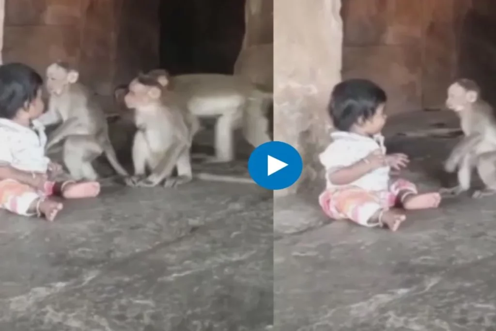 छोटी बच्ची और बंदरों का अनोखा वीडियो