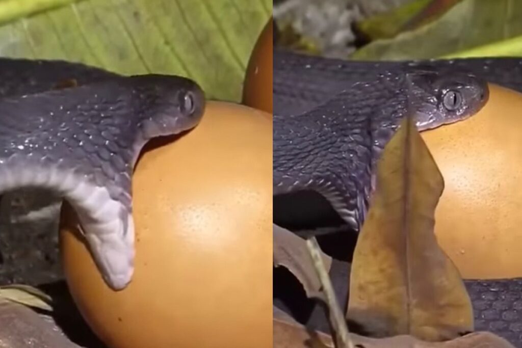 यूट्यूब पर वायरल हो रहे इस वीडियो को वाइलड लाइफ़ रेस्क्यू बैहर नाम के चैनल द्वारा शेयर किया गया है। इस वीडियो में काले रंग का एक सांप एक बडे़ अंडे को निगलने की फ़िराक़ में दिख रहा है। वीडियो में यह देखा जा सकता है कि सांप के आगे 2-3 बड़े-बड़े अंडे हैं। वह इनमें से थोड़े छोटे आकार के अंडे पर मुंह रखता है और धीरे-धीरे उसे निगलने की कोशिश करता है। हैरानी की बात तो यह है कि सांप अपने छोटे से मुंह में इतना बड़ा अंडा बिना किसी परेशानी के निगल जाता है। वहीं वीडियो के अंत में पूरा अंडा निगलने के बाद सांप धीरे-धीरे उस अंडे का छिलका बाहर निकाल देता है।