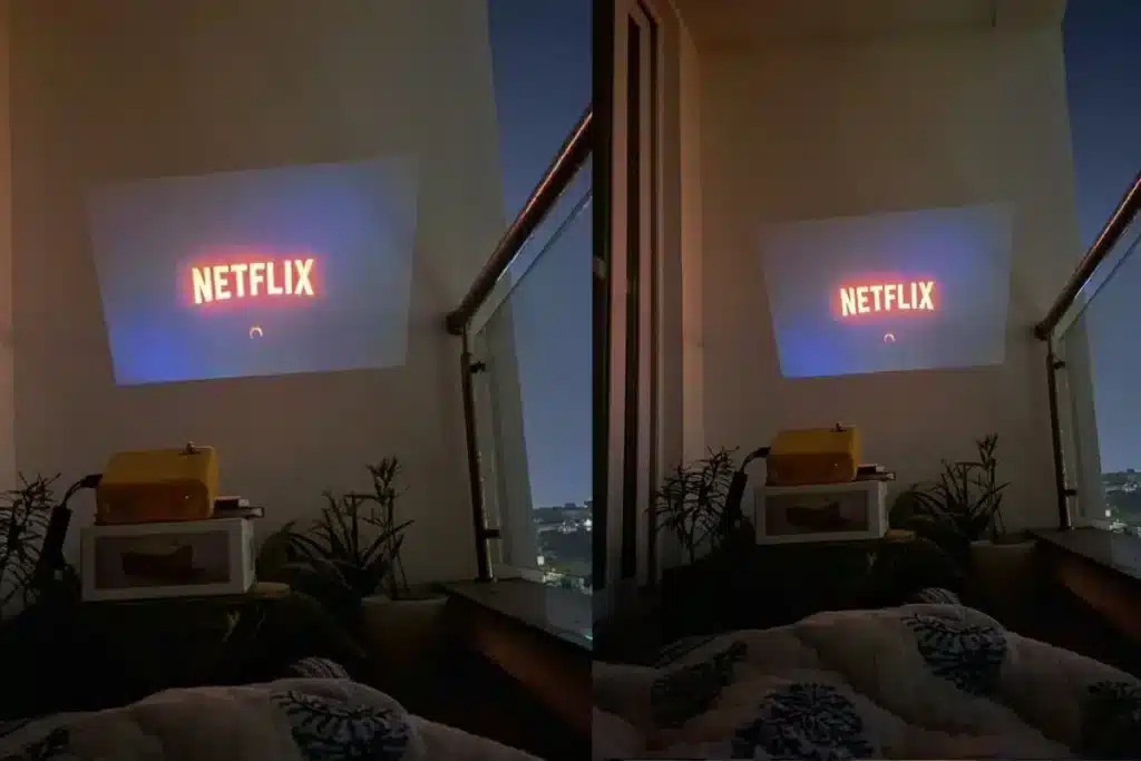 दरअसल बेंगलुरु की श्रेयांसी शाह ने रविवार को सोशल मीडिया प्लेटफॉर्म एक्स पर एक तस्वीर शेयर की जिसमें उन्होंने यह बताया कि कैसे वह शाम को अपनी बालकनी में किताबों के सहारे प्रोजेक्टर लगाकर फिल्म को इंजॉय कर रही हैं। आप इस तस्वीर में देख सकते हैं कि वह नेटफ्लिक्स पर किसी फिल्म को देख रही है। इसे शेयर करते हुए उन्होंने कैप्शन में लिखा, “तारों के नीचे फिल्म देखना मेरे अपने बालकनी में।”