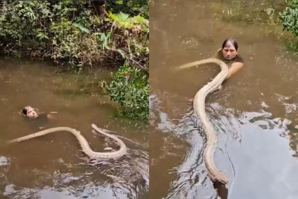 कोबरा सांप के साथ पानी में तैरता दिखा लड़का