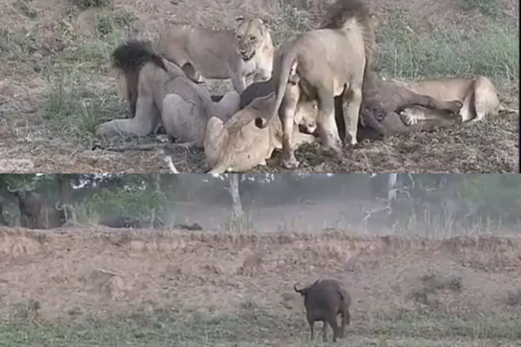 इस दौरान वो उसे खाने की सोच ही रहे होते हैं , तभी अचानक से उनमें लड़ाई होना शुरु हो जाती है। वो एक-दूसरे पर मारने पर उतारु हो जाते हैं। जिसके बाद मौके का फायदा उठाकर भैंसा वहां से रफुचक्कर हो जाता है। भैंसा जंगल के राजा की नांक के नीचे निकल जाता है और वो चाहकर भी कुछ नहीं कर पाते हैं। इस तरह भैंसा अपनी जान को बचाने में कामयाब हो जाता है।