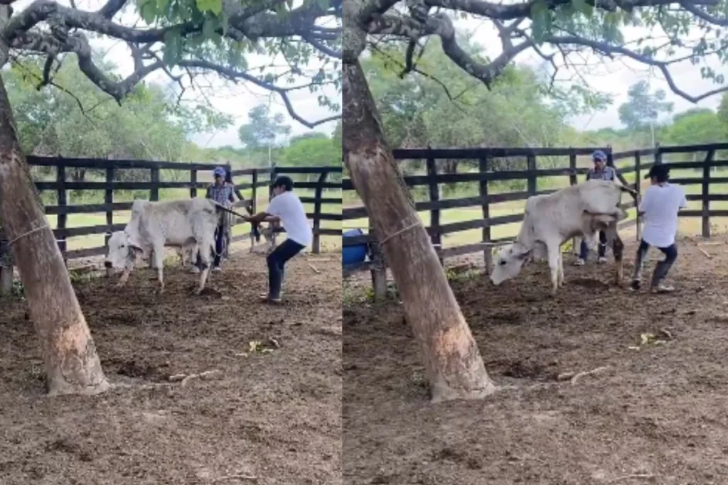 इसमें एक पेड़ से सांड को बांधा गया है। वहीं, आस-पास कुछ लोग नजर आ रहे हैं। तभी एक युवक बैल की पूछ को बेरहमी से खींचते हुए उस पर हमला करना चाहता है। बैल की पूछ के साथ जैसे ही वो बर्बता करता है वैसे ही उसके मुंह पर घुमाकर एक लात पड़ जाती है। जिसकी वजह वो जमीन पर चारों खाने चित हो जाता है। इन लोगों को देखकर लग रहा है कि, शायद वो उस पर हमला करना चाहते हैं। लेकिन बैल ने इन हमलावरों को उनकी औकात दिखा दी है।