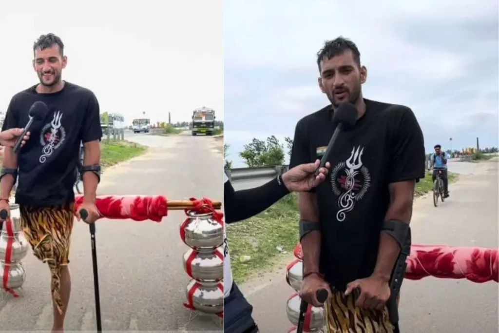 एक टांग पर कांवड़ लेकर निकले गोल्ड मेडलिस्ट मोहित