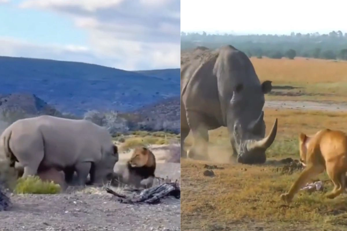 गैंडे और शेरों की भयंकर लड़ाई कैमरे में कैद