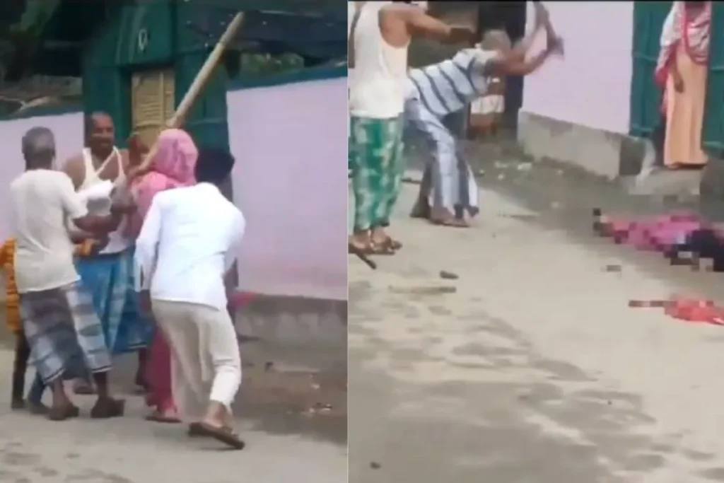 महिला को पीटते आदमियों के झुंड का Viral Video