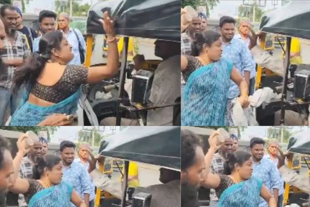 महिला ने ऑटो वाले को चप्पल से पीटा