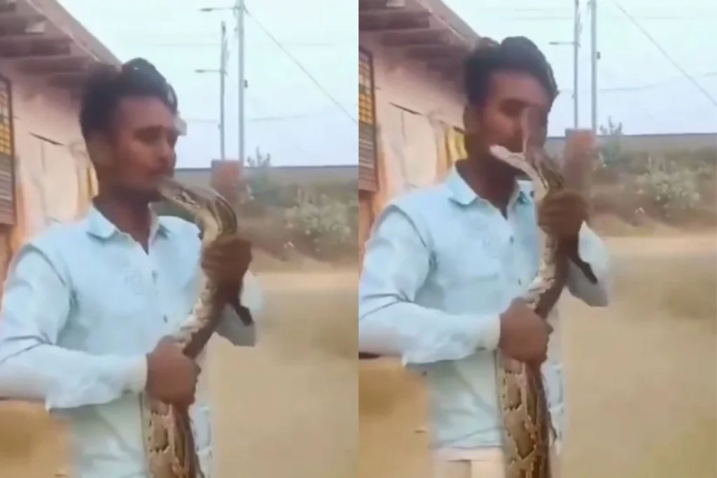 इसके साथ ही कैप्शन में लिखा है कि, “शायद रील बनाने का शौक़ महंगा पड़ गया।” वीडियो की शुरुआत में देखा जा सकता है कि, एक लड़क हाथ में अजगर सांप को थामे हुए है और उसे किस करने की सोच रहा है। ये लड़का वीडियो रिकॉर्ड कराने के लिए ये सबकुछ कर रहा है। लड़का जैसे ही सांप के करीब जाता है वैसे ही वह उसके गाल को अपने नुकीले दांतों में जकड़ लेता है। इस दौरान लड़के की हालत बेहाल हो जाती है। सांप का दांत काफी देर तक लड़के के गाल में अटका रहता है। तमाम कोशिशों के बाद में वह सांप से छुटकारा तो पा लेता है लेकिन, उसकी हालत खराब हो जाती है। ये घटना कब और कहां की है? फिललाह इसकी जानकारी उपलब्ध नहीं है। लेकिन ये काफी चौंका रही है।