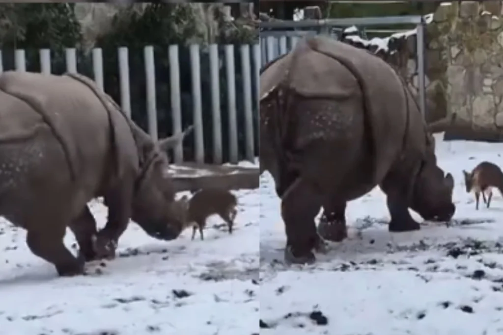 ये वीडियो पोलैंड के ब्रोक्लों का बताया जा रहा है। इस वीडियो को चिड़ियाघर से रिकॉर्ड किया गया है। इसमें देखा जा सकता है कि, अचानक से हिरण और गैंडा आमने और सामने आ जाते हैं। जिसके बाद हिरण भारी-भरकम गैंडे से डरे उसे टक्कर मार देता है। इस दौरान गैंडा अपनी पावर का जरा भी इस्तेमाल नहीं करता है बल्कि वो उसके साथ खेलने लग जाता है। दोनों के बीच जो दोस्तांना अंदाज दिख रहा है वो लोगों को सच्ची दोस्ती की याद दिया रहा है।