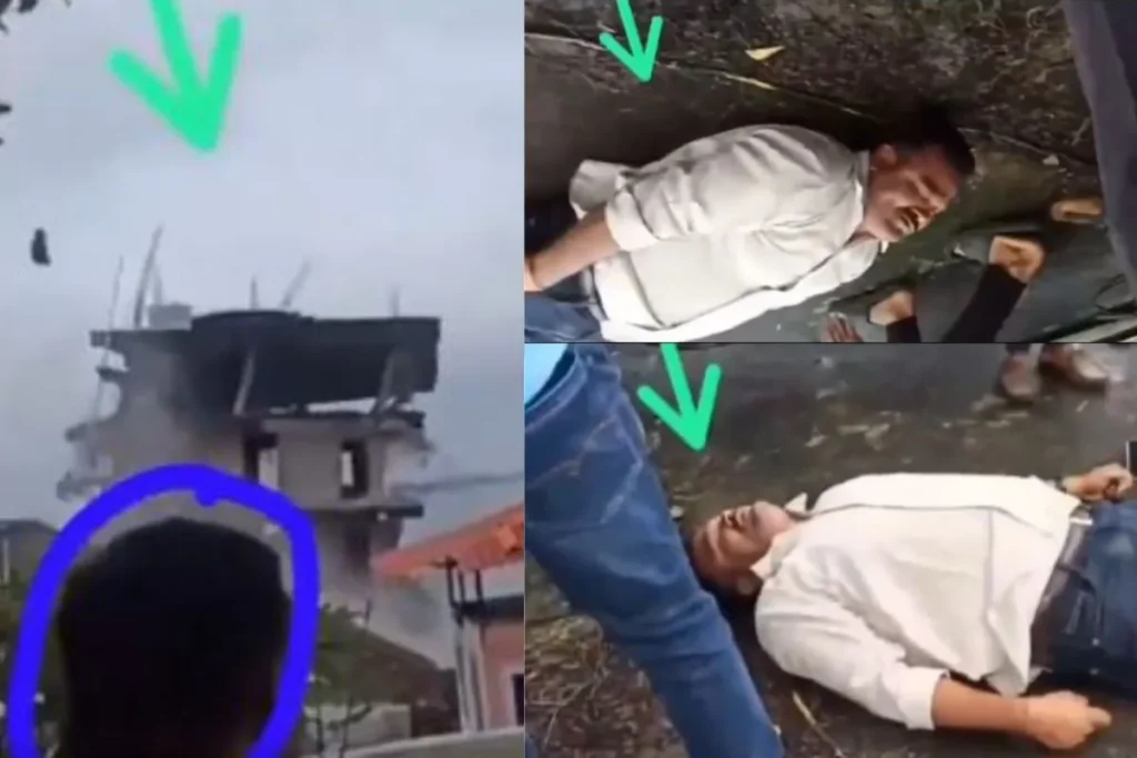 इस हैरत में डाल देने वाले Viral Video को एक्स पर पर अपलोड किया गया है। इस वीडियो में देखा जा सकता है कि, एक आदमी कई सारे लोगों के साथ खड़ा है। ये सभी गिरती हुई बिल्डिंग की वीडियो बना रहे हैं। दूर से ये आदमी भी अपने कैमरे में इस नजारे को कैद कर रहा होता है लेकिन, तभी घर के गिरते ही उससे एक उड़ता हुआ पत्थर आता है जो कि, सीधे आदमी के सिर पर लगता है। पत्थर के लगते ही आदमी जमीन पर चारों खाने चित होकर गिर जाता है। इस दौरान उसके सिर से काफी खून भी निकलने लग जाता है। आदमी की हालत को देख वहां पर मौजूद लोग हैरान हो जाते हैं। इन लोगों को कुछ देर तक तो समझ ही नहीं आता आदमी के साथ क्या हुआ है?