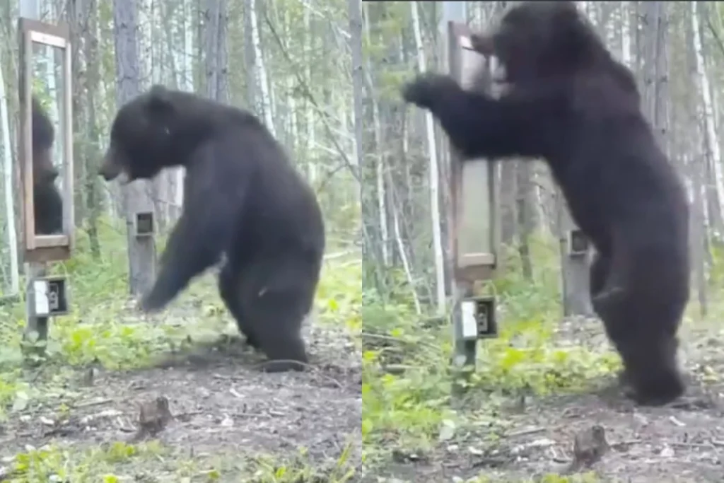 Viral Video: अपनी शक्ल को पहली बार शीशे में देख पागल हुआ भालू, खौफ से की हैरतअंगेज हरकत