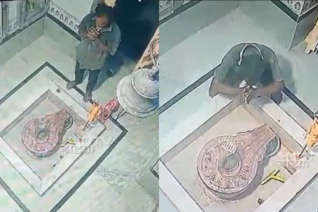 Viral Video में देखा जा सकता है, एक चोर मंदिर के अंदर आ रहा है. उसके दोनों हाथ जुड़े हुए हैं. इसके बाद वह आगे-पीछे देखता है और मौका पाते ही शिवलिंग के पास बैठ जाता है. इस दौरान वह कुछ प्रार्थना करता हुआ नजर आ रहा है. इसके बाद मौका देखते ही वह इस शिवलिंग के पास रखे नाग को उठा लेता है. नाग उठाने के बाद वह अपनी कमीज़ में इसे छुपाने की कोशिश कर रहा है.