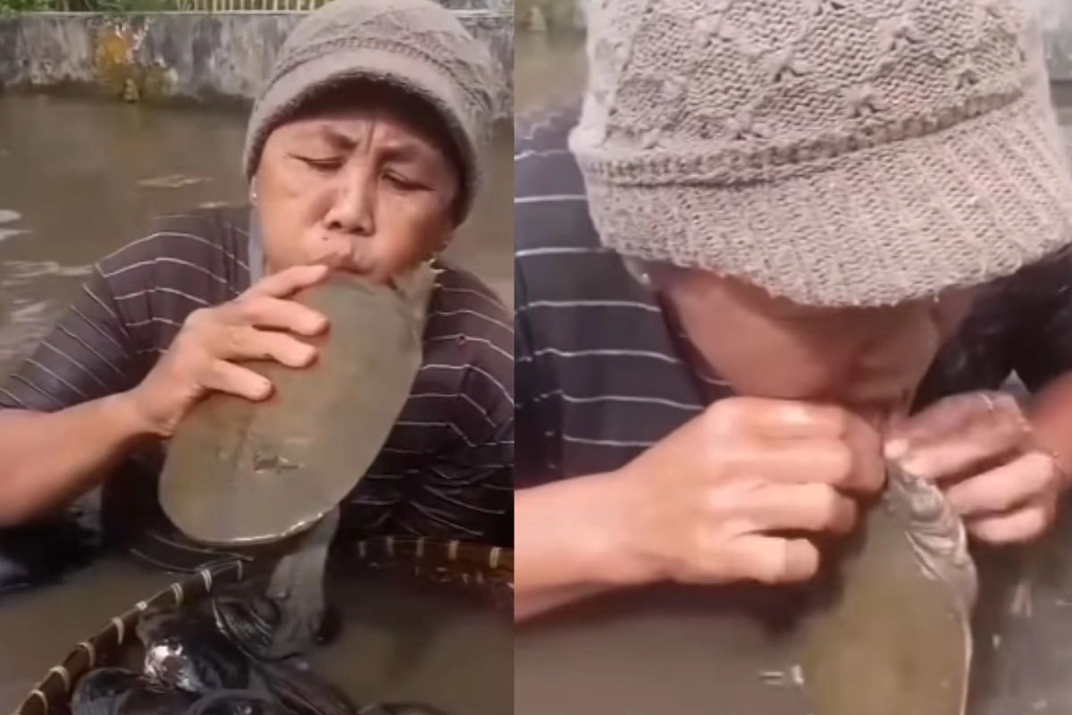 वीडियो में देखा जा सकता है कि, आदमी के पास एक टोकरी है जिसमें तमाम तरह सीप दिख रहे हैं। अचानक आदमी एक कछुए को उठाकर उसके मुंह में फूंक मारता है। इसके बाद कछुआ अपने नुकीले दांतों से व्यक्ति के होंठों को पकड़ लेता है। इस दौरान वह दर्द से तड़पना शुरु कर देता है। आदमी तमाम कोशिशों के बाद अपना होंठ छुड़ाने में कामयाब हो जाता है। लेकिन उसकी हालत खराब हो जाती है।