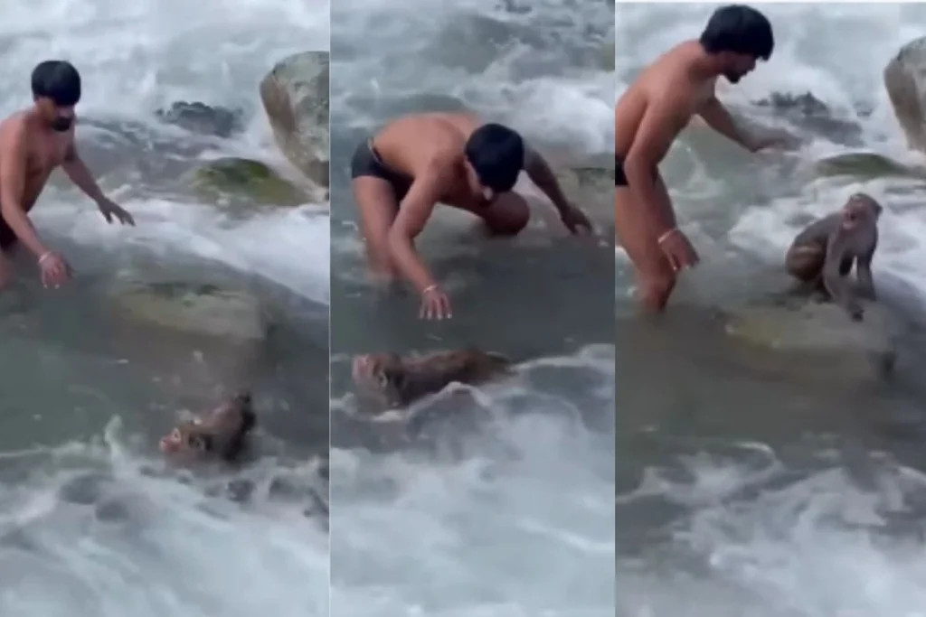 इसके साथ ही कैप्शन में जानकारी देते हुए लिखा है कि, “जब नदी के तेज बहाव में फंसा एक बेबस बंदर, दो नन्हे नायकों ने अपनी जान की परवाह न करते हुए बचा लिया उसकी जिंदगी, दिखाई इंसानियत की अनमोल मिसाल!”वीडियो में देखा जा सकता है कि, एक लड़का तेज गति से बहती नदी में उतर जाता है और पानी में उतरकर बंदर को बचा रहा है। इस दौरान बंदर युवक को डराने की कोशिश कर रहा है। लेकिन लड़का बिना डरे और बिना अपनी जिंदगी की परवाह करे बेजुबान को बचाने के लिए मेहनत करता है। वीडियो के अंत में वो बंदर को बचाने में कामयबाब हो जाता है।
