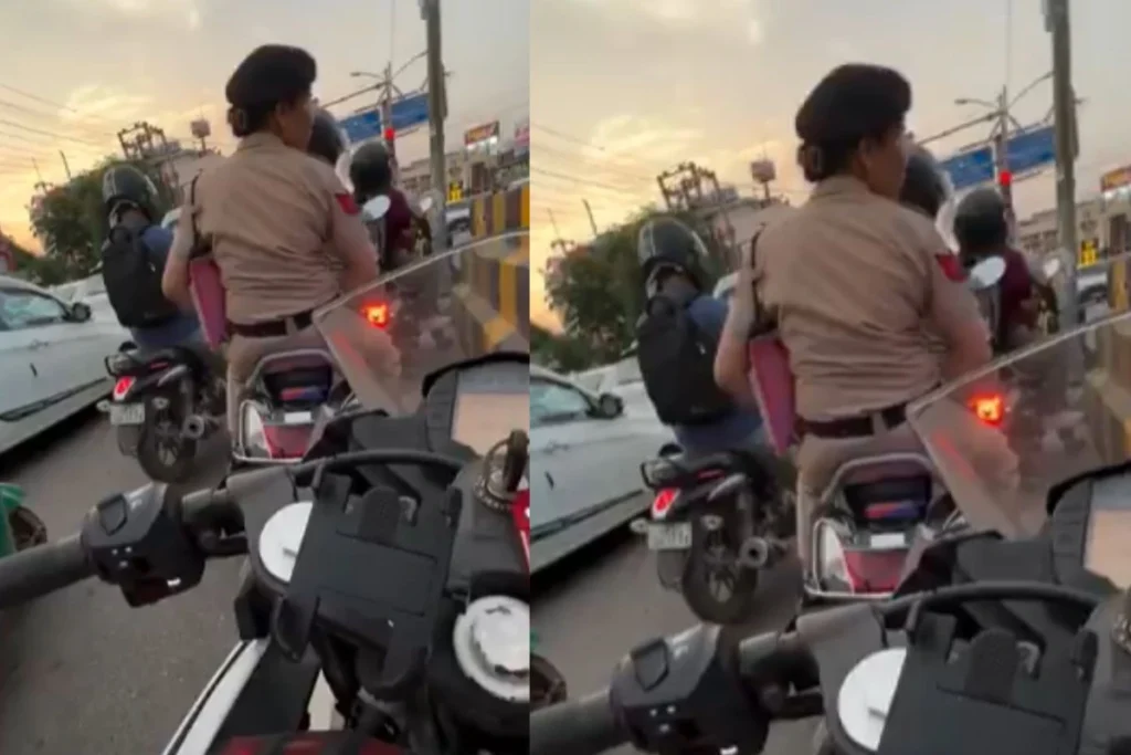 बिना हेलमेट स्कूटी पर घूम रही महिला पुलिसकर्मी को लड़के ने सिखाया कानून