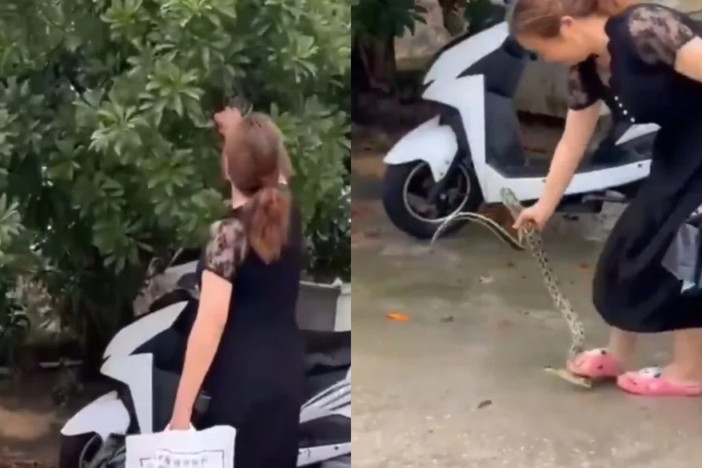 Viral Video: महिलाओं को कुछ लोग नाजुक समझते हैं लेकिन, ऐसा नहीं है। औरतों को आपने तमाम तरह के काम करते हुए देखा होगा लेकिन सांप को इस तरह से ठिकाने लगाते हुए शायद ही कभी देखा हो। Social Media पर एक वीडियो वायरल हो रहा है। इसमें एक महिला सांप को पेड़ से इस तरह से उतार रही है जैसे कि, वो आम हो या फिर कोई सब्जी हो। इसके बाद वह अपने पैरों से उसे दबा भी देती है। महिला वीडियो के अंत में क्या करती है? ये लोगों को काफी हैरान किए हुए हैं।