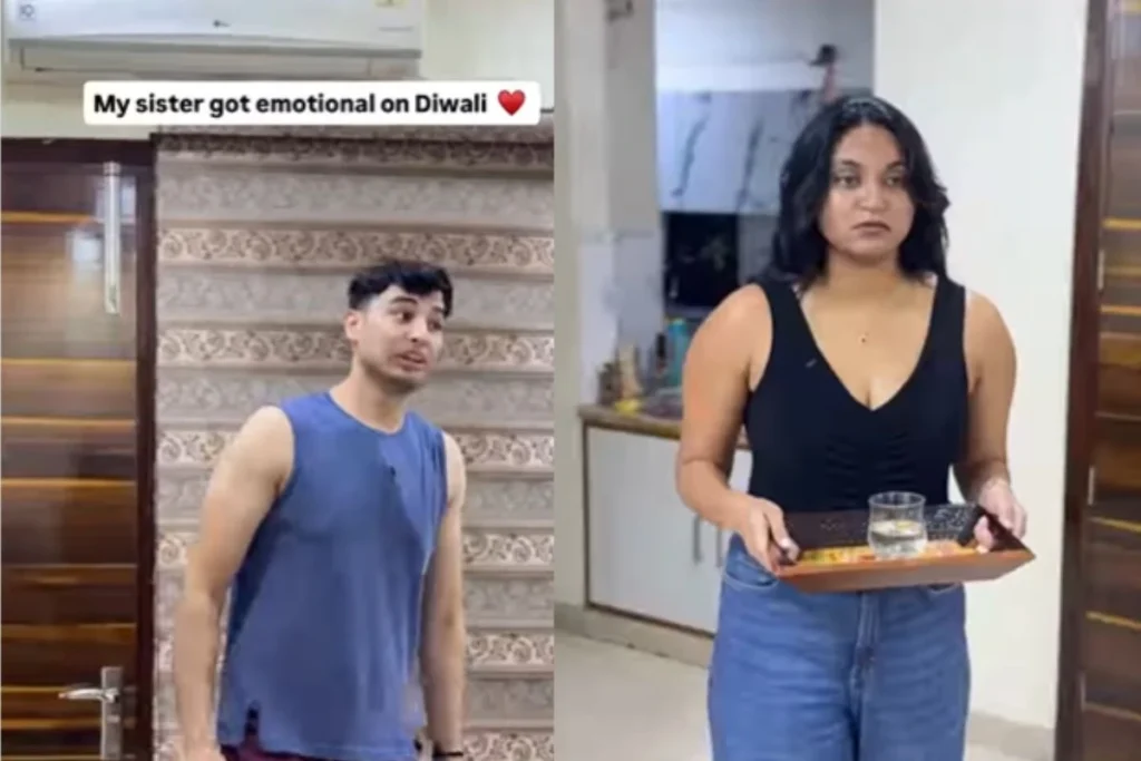इस वायरल वीडियो को इंस्टाग्राम अकाउंट से शेयर किया गया है. वीडियो पर कई सारी लाइक , कमेंट आ चुके हैं .वीडियो में देखा जा सकता है कि, एक भाई दिवाली के दिन अपनी बहन से मिलने आता है. बहन स्वागत करती है और उसे बोलती है साइड में चप्पल उतार दो. वह चप्पल जिस जगह उतरता है वहां पर रंगोली बनी होती है. वह अपनी बहन की सारी रंगोली खराब कर देता है. उसके अरमानों पर पानी फेर देता है. जिसकी वजह से बहन को इतना भयंकर गुस्सा आता है कि वह उसे मारने के लिए दौड़ पड़ती है और उसका भाई पीछे-पीछे भागता है. अब यही वीडियो सोशल मीडिया पर काफी ज्यादा सर्कुलेट हो रहा है.