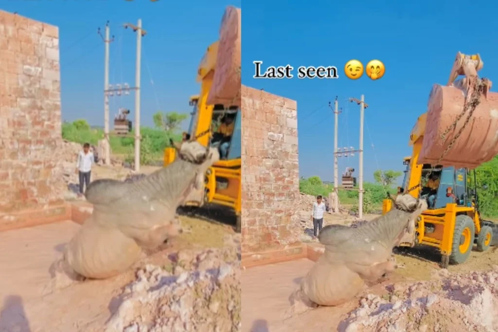 बैल की जान बचाते हुए Bulldozer का हुआ वायरल वीडियो