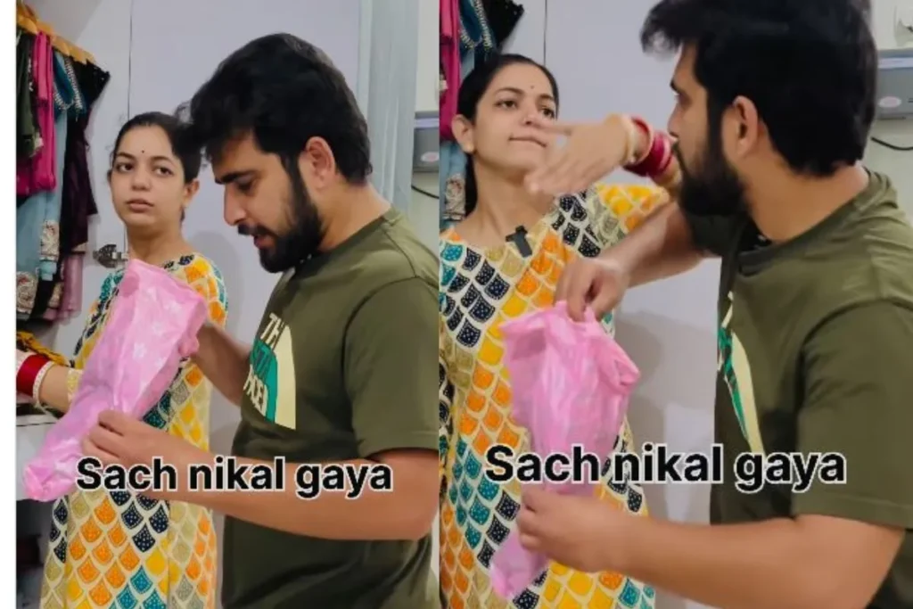 इस बेहद फनी Viral Video को इंस्टाग्राम पर अपलोड किया गया है। इस वीडियो में देखा जा सकता है कि, पत्नी कपड़ों की अलमारी से कुछ सामान निकाल रही होती है तभी, उसके हाथ में एक थैली आ जाती है और वह अपने पति से बोलती है कि, बाबू देखो इसमें क्या है? पति जैसे ही पन्नी खोलता है वो चौंक जाता है और मुंह बनाते हुए बोलता है कि, ये तो वो पट्टी है जो कि, मेरी आंखों पर शादी के समय बंधी हुई थी। ये सुनते ही पत्नी को भयंकर गुस्सा आ जाता है और वह पति को थप्पड़ मार देती है, थप्पड़ खाने के बाद पति बोलता है कि, अरे ये तो सेहरा है। इस तरह ये वीडियो वायरल हो जाता है।