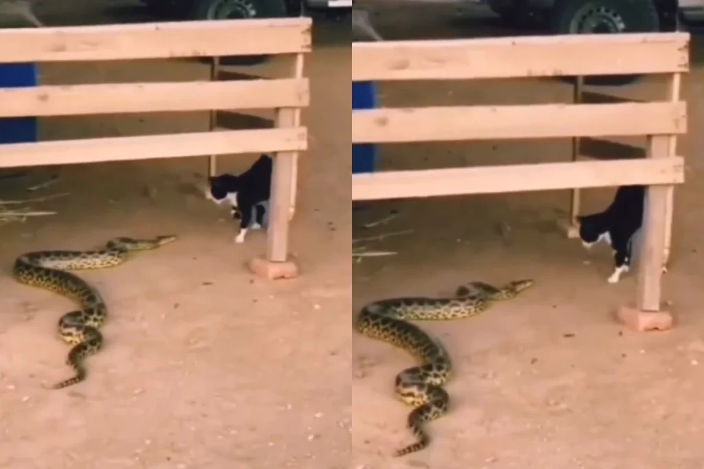 Viral Video: कभी-कभी कैमरे में कुछ ऐसी घटनाएं कैद हो जाती हैं। जिन पर यकीन करना मुश्किल हो जाता है। इसलिए हमारा आप से सवाल है कि, क्या कभी आपने बिल्ली को विशालकाय अजगर सांप से पंगा लेते हुए देखा? अगर नहीं तो इस वीडियो में देख लीजिए क्योंकि इसमें छोटी सी बिल्ली सांप को अपनी मौत की दावत दे रही है। इतना ही नहीं वो सीधे उसे टक्कर भी दे रही है। ये वीडियो यूजर्स को काफी प्रभावित कर रहा है।