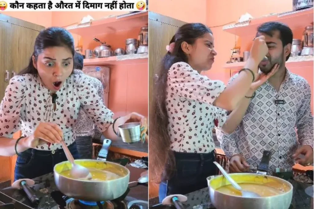इस बेहद मजेदार वीडियो को keshavshashivlogs नाम के इंस्टाग्राम अकाउंट से शेयर किया गया है। इसके साथ ही कैप्शन में जानकारी देते हुए लिखा गया है कि, भारतीय नारी सब पर भारी । इस वीडियो में साफ देखा जा सकता है कि, एक महिला खाना बना रही है उसके साथ पति भी किचन में खड़ा है, तभी महिला से सब्जी में अचानक नमक डालते हुए बहुत सारा गिर जाता है। ये सब देखकर महिला खौफ में आ जाती है और सोचने लग जाती है कि, अब क्या करुं ? तभी उसके दिमाग में आइडिया आता है कि, पति पर इसका इल्जाम लगा दिया जाए। महिला दिमाग लगाते हुए पति से बोलती है कि, मैं वॉशरुम जा रही हूं तुम सब्जी में नमक डाल देना। इस पर पति थोड़ा सा नमक डाल देता है। जब वापस पत्नी आती है तो वह सब्जी को चखकर देखती है और पति पर ही उल्टा इल्जाम लगाते हुए चिल्लाना शुरु कर देती है। बेचारा पति समझ ही नहीं पाता है कि, वह पत्नी का शिकार हो चुका है।