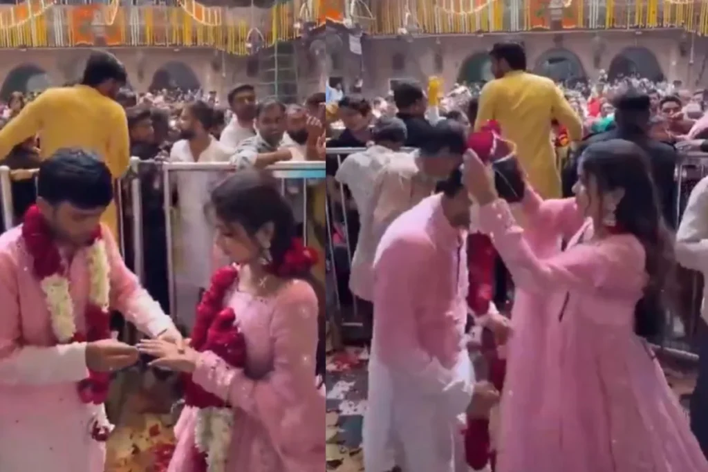 कथित तौर पर बांके बिहारी मंदिर वृंदावन से यह वायरल वीडियो सोशल मीडिया पर चर्चा में है जिसे x चैनल से शेयर किया गया है। इसके साथ लिखा गया, “आम भक्त बेरिकेडिंग के उस पार तो वीआईपी भक्त बेरिकेडिंग के अंदर भगवान के एकदम करीब दर्शन पुजारी का आशीर्वाद रिंग सेरेमनी फोटो रील आदि आदि।” वीडियो ने बहस की शुरुआत कर दी है जिसे अब तक 7000 से ज्यादा व्यूज मिले हैं। वायरल वीडियो में आप देख सकते हैं कि बेरिकेडिंग के अंदर कैसे रिंग सेरेमनी से लेकर रील्स बनाए जा रहे हैं।