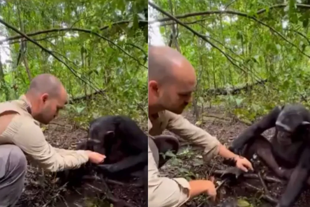 चिम्पांजी और इंसान की केमिस्ट्री कैमरे में हुई कैद