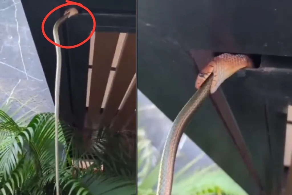 इस वायरल वीडियो को Wildlife Uncensored नाम के एक्स हैंडल से पोस्ट किया गया है। वीडियो में देखा जा सकता है कि, एक कोबरा सांप ने छत से बेहद लंबे ग्रीन स्नेक को लटकाया हुआ है।