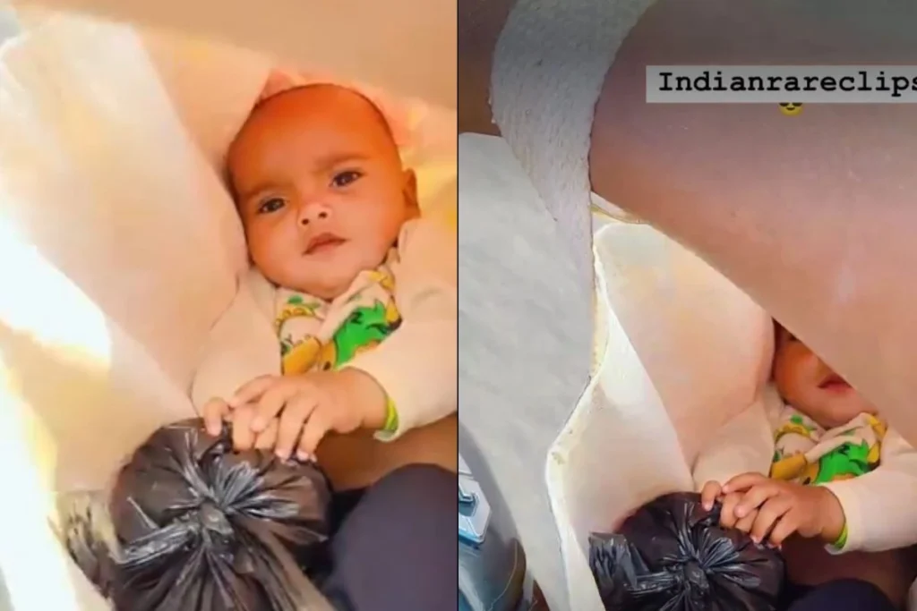 इस Viral Video को rareindianclips नाम के एक्स हैंडल से अपलोड किया गया है। वीडियो में देखा जा सकता है कि, एक आदमी ने हाथ में थैला लटकाया हुआ है और इसके अंदर बच्चा बैठा रखा है।
