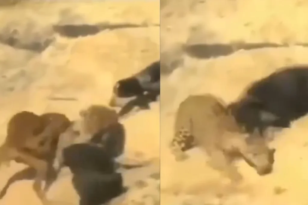 Dog Viral Video की बात करें तो इसमें आप देख सकते हैं कि कुत्ते के एक झुंड ने अचानक तेंदुए पर हमला कर दिया। यहां शिकारी खुद ही शिकार बन गया। चाहकर भी तेंदुआ कुत्तों की गिरफ्त से बाहर नहीं हो पा रहा था। वायरल वीडियो में आप देखेंगे कि जब तेंदुआ कुत्ते पर अटैक करने की कोशिश कर रहा था तो कुत्तों के झुंड के सामने वह चाह कर भी कुछ नहीं कर पता है। तेंदुआ को कुत्तों से कोई मौका ही नहीं मिलता है कि वह अपनी जान बचा सके।